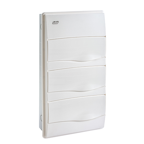 31750 Serie Oro. Caja distribución para empotrar con ventana opaca blanca ABS RAL 9003. Módulos: 3x12 (36) raíl DIN. Dimensiones: 517Hx283Wx97Dmm. Dimensiones de área de empotrar: 497Hx263Wx65Dmm. Grado de protección: IP40. Protección impacto: IK08. Tensión de empleo: 100VAC/1500VDC. Doble aislamiento Clase II. Temperatura de trabajo: -25ºC~+40ºC. Material de base y marco: Base: PS RAL 7035, marco: ABS Blanco RAL 9003. Plásticos libres de halógenos con protección UV.
