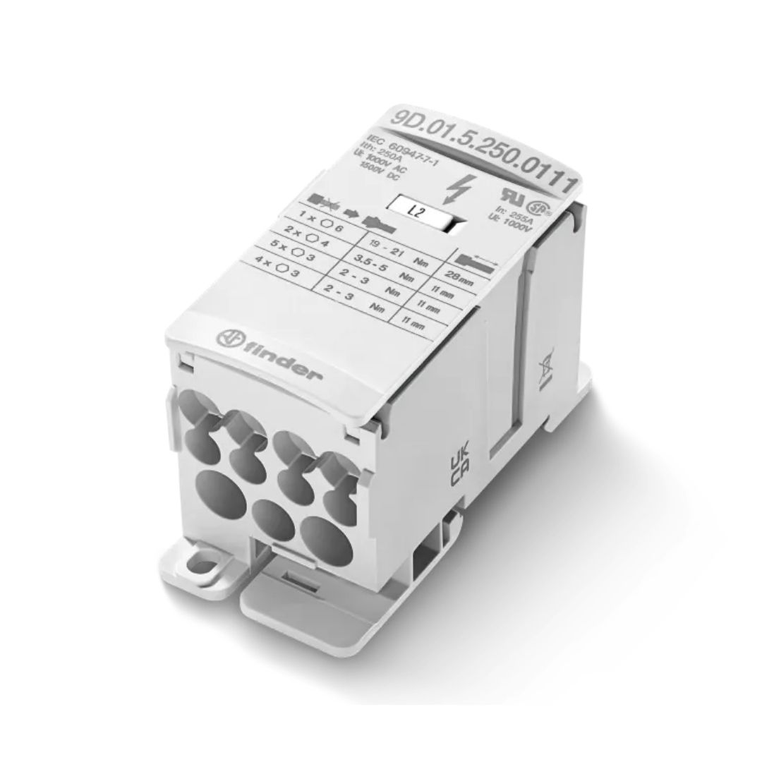 9D.01.5.080.0304 Bloques de distribución para armarios eléctricos. Corriente 80A a 1000V. Cuenta con 3x(2.5-16)mm2/(14-6)AWG y 4x(2.5-6)mm2/(14-10)AWG. Máxima tensión de trabajo: 1000V.