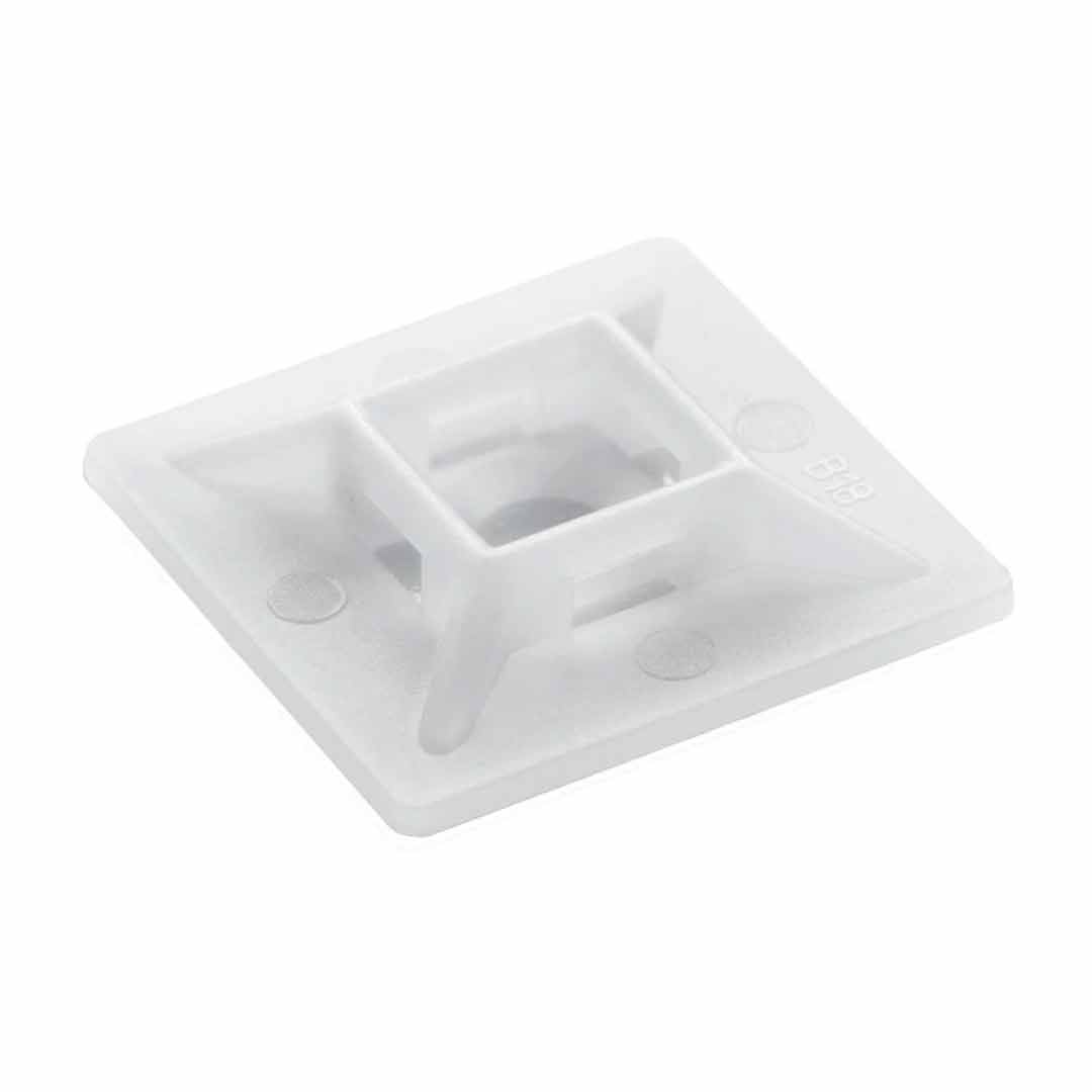 Base auto adherible para cinchos M-HD. Dimensiones: 38.4Hx38.4Wmm. Color natural. 100 piezas por empaque. Nailon 6/6. Grado de inflamabilidad: UL 94V-2.