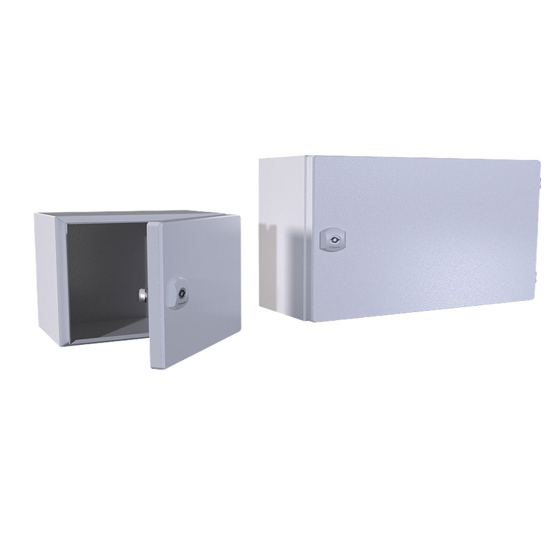 DM Gabinete mural chapa de acero, puerta con junta continua de poliuretano inyectado. Dimensiones: 300Hx250Wx150Dmm. Superficie: caja y puerta con recubrimiento en polvo nanochapado + electrostático, placa de montaje galvanizada. Unidad de empaque: gabinete con (1) puerta(s), (1) placa de montaje, (1) cierre: doble paletón 3mm. Grado de protección IP66. Grado de protección NEMA: NEMA 4. Protección IK10. Aprobaciones: UL, cUL, UK CA, CE, NEMA 12, NEMA 4X4, TSE, RoHS, DEKRA, EAC, TUV, cRUus