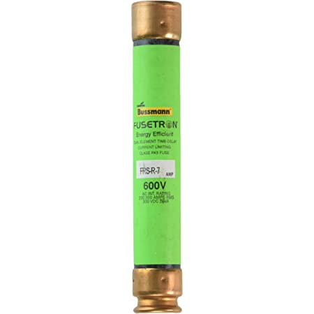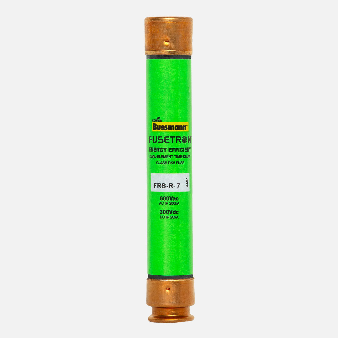 Fusetron Fusible accion retardada clase RK5 de doble elemento. Tamaño: 21x127mm. Indicado para una corriente de 7A. Máxima tensión de empleo 600VCA/300VCD. Especificado a una capacidad interruptiva de 200kA/20kA DC. Aprobaciones: UL Listed, CSA certified.