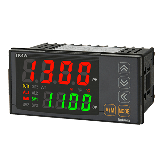TK4W-14RN Controlador de temperatura/procesos PID estándar de alta precisión de 4 dígitos. Diseñado para control estándar. Ciclo de muestreo de 50ms. Tamaño DIN 96WX48H con profundidad de 64.5Dmm. Salida de control 1 tipo: Relay. 1 alarma. Tensión de alimentación: 100-240VCA. Métodos de control: ON/OFF, P, PI, PD, Control PID. Permite entrada de termopar: K, J, E, T, B, R, S, N, C, G, L, U, Platinel II y RTD: DPt100O, DPt50O, JPt100O, Cu100O, Cu50O, Nikel 120O. Analog: 0-100mVCD, 0-5VCD, 1-5VCD, 0-10VCD,0-20mA, 4-20mA. Grado de protección frontal: IP65.