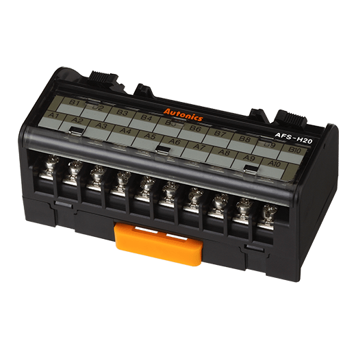 AFS-H20. Bloque de terminales para PLC de interfaz conector Hirose. 20 puntos de conexión. Rango de sección nominal 0.3-1.25mm²/22-16AWG. Temperatura de trabajo de -15°C~55°C. Conexión tipo tornillo. Grado de protección IP20.