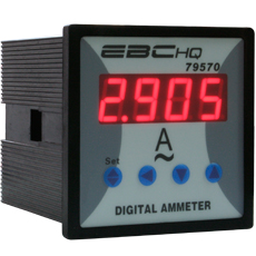 Amperimetro digital de 4 digitos 72x72mm. Rango de medición 0-5A CA. Salida a relé de tipo NA.