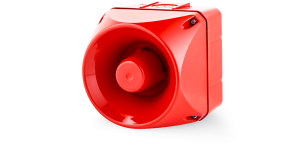 ASM Sirena multitono cuadrada 132mm con 32 tonos. Señalización acústica clara de aprox. 113 dB (ajustable mediante potenciómetro). Color de la carcasa: rojo. Tensión de alimentación: 24-48VCA/CD. Temperatura de operación: -30 °C ~+60 °C. Material: Policarbonato. Grado de protección: IP66, UL 4/4X/13.