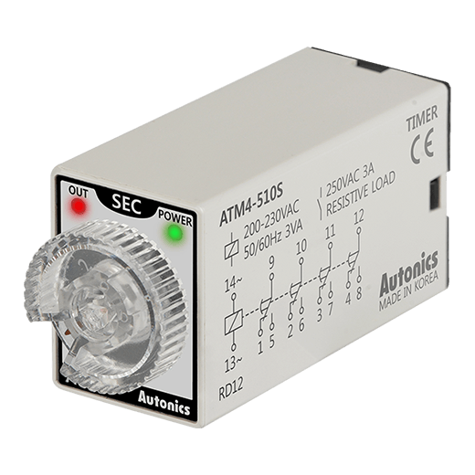 ATM4-510S Mini-timer análogo On Delay 14 pines 21.5Wx28Hmm 1-10s 220VCA 4NA4NC