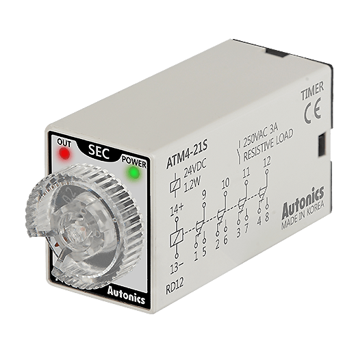 ATM4-610S Mini-timer análogo On Delay 14 pines 21.5Wx28Hmm 1-10s 110VCA 4NA4NC