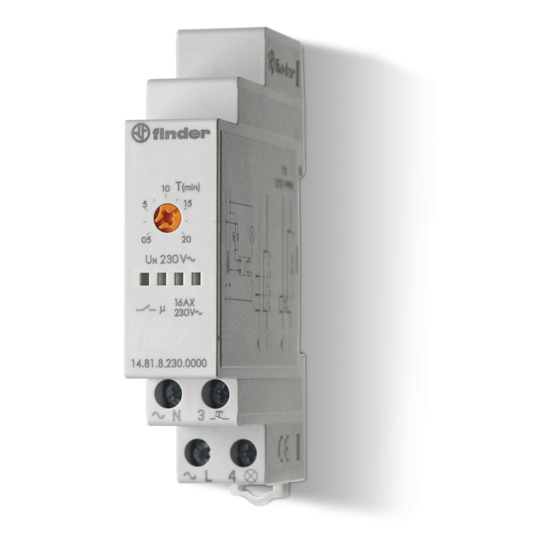 14.81.8.120.0000 Interruptores automáticos de escalera electrónicos monofunción. Funciones: automático de escalera + función de mantenimiento. Tensión de mando de 120VCA. Equipado con contactos 1NA. Material de los contactos: plata oxido de estaño (AgSnO2). Indicado para una corriente nominal de 16A a tensión de 230VCA. Dimensiones: 88.8Hx18Wx61Dmm. Montaje en Riel DIN. Temperatura de operación -10°C~60°C. Aprobaciones: CE, UKCA, EAC, IMQ. Protección IP20.