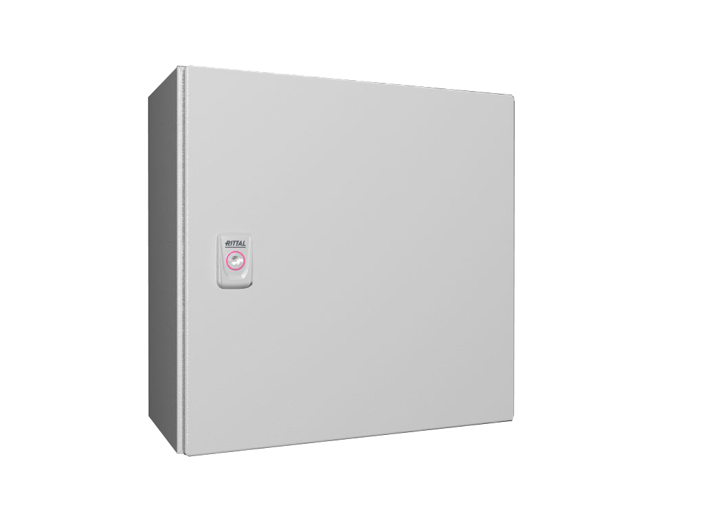 1380.000 AX Gabinete mural de chapa de acero, puerta con junta continua de poliuretano inyectado. Diseño de 1 puerta. Color RAL 7035. Dimensiones: 380Hx380Wx210Dmm. Superficie: caja y puerta de imprimación por inmersión (exterior texturizado, pintura estructurada) y placa de montaje galvanizada. Unidad de empaque: gabinete con puerta(s), placa(s) entrada de cables tamaño 2, placa de montaje, listón de puerta perforado, cierre: doble paletón 3mm. Grado de protección IP66. Grado de protección NEMA: NEMA 4. Protección IK10. Aprobaciones: UL, cUL, DNV GL…