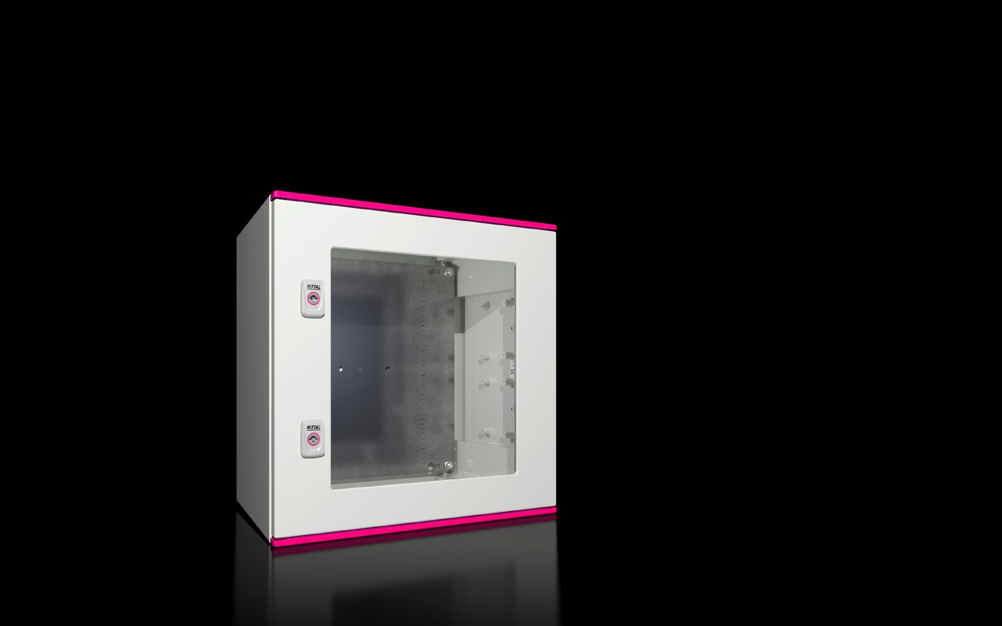 1454.000 AX Gabinete mural de poliéster con puerta con junta continua de poliuretano inyectado. Diseño de 1 puerta. Color semejante al RAL 7035. Dimensiones: 500Hx500Wx300Dmm. Superficie: Caja y puerta de poliéster insaturado GFK, sin tratamiento, poliéster tintado y placa de montaje galvanizada. Unidad de empaque: gabinete con puerta abisagrada, cerrado en todo el contorno, bombín de doble paletón 3 mm, Placa de montaje, Doble junta en el canto superior e inferior de la puerta como listón de protección contra el agua de lluvia integrado, Perfiles en C laterales para un ajuste en profundidad sin escalonamientos de la placa de montaje. Grado de protección IP66. Grado de protección NEMA: NEMA 4X. Protección IK08. Aprobaciones: UL, cUL, DNV GL…