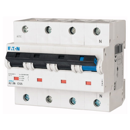 AZ-3N-D63 xEfect Interruptor automático termomagnético (disyuntor MCB). 3P+N. Corriente nominal: 63A. Curva de disparo: tipo D. Capacidad interruptiva de acuerdo a IEC 60947-2: 25kA. Tensión nominal (IEC): 230/400VCA y 60VCD por polo. Montaje en riel DIN IEC/EN60715. Grado de protección: IP20.