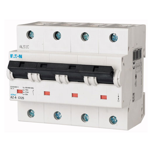 AZ-4-C32 xEfect Interruptor automático termomagnético (disyuntor MCB). 4 polo(s). Corriente nominal: 32A. Curva de disparo: tipo C. Capacidad interruptiva de acuerdo a IEC 60947-2: 25kA. Tensión nominal (IEC): 230/400VCA y 60VCD por polo. Montaje en riel DIN IEC/EN60715. Grado de protección: IP20.
