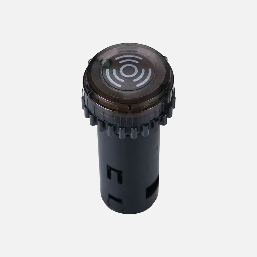 B2NB-B1D Zumbador magnetico color negro. Tensión nominal: 12-24VCD. Color del LED verde. Montaje en panel 22mm. Sonido continuo/intermitente.