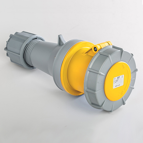 Base aérea. Corriente nominal: 125A a una tensión de trabajo de 120VCA. Configuración de contactos: 2P+T. Código horario: 4h, color amarillo. Resistencia impacto: IK08. Material: poliamida 6 HF, cumple la directiva RoHS. Material contacto: latón. Grado de proteccón: IP66-IP67.