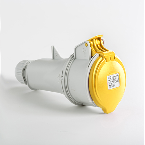 Base aérea. Corriente nominal: 16A a una tensión de trabajo de 120VCA. Configuración de contactos: 3P+N+T. Código horario: 4h, color amarillo. Resistencia impacto: IK08. Material: poliamida 6 HF, cumple la directiva RoHS. Material contacto: latón. Grado de proteccón: IP44.