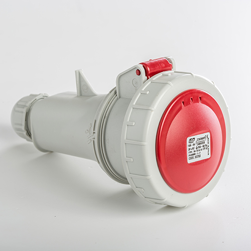 Base aérea. Corriente nominal: 16A a una tensión de trabajo de 220/400VCA. Configuración de contactos: 3P+N+T. Código horario: 6h, color rojo. Resistencia impacto: IK08. Material: poliamida 6 HF, cumple la directiva RoHS. Material contacto: latón. Grado de proteccón: IP66-IP67.