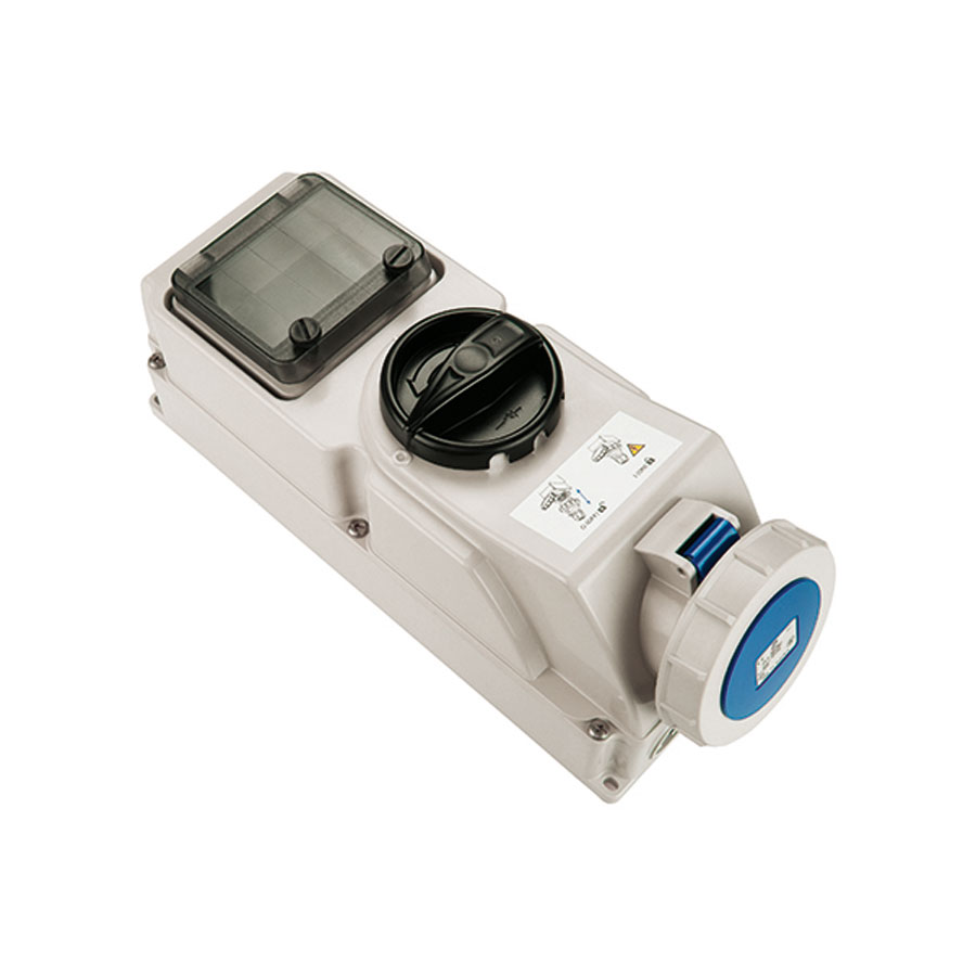 Base mural enclavamiento rail DIN i 32A 2P+T 230VCA 6h Azul IP66-IP67