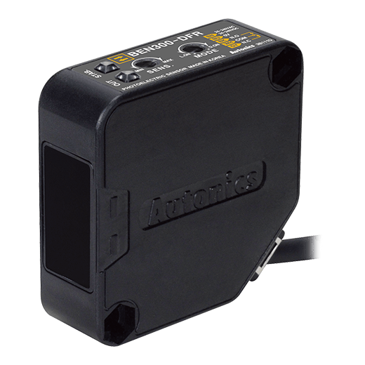 BEN300-DFR Sensor fotoeléctrico universal, con detección tipo difuso reflectivo a una distancia máxima de operación de 300mm. Con ajuste de sensibilidad. Indicado para detectar material opaco y translúcido. Rango de tensión de alimentación: 24-240VAC/DC. Modo de operación: Light ON/Dark ON (seleccionable). Salida de control tipo Relay. Fuente de luz: LED de infrarrojo (940 nm). Tipo de conexión: cable 2m. Protección: IP50.