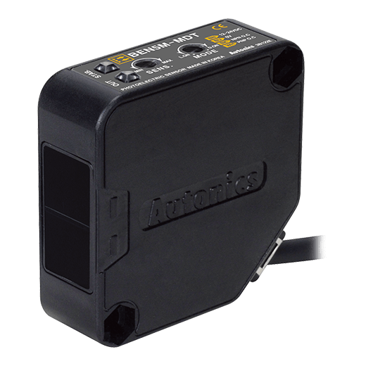 BEN5M-MDT Sensor fotoeléctrico universal, con detección tipo retro reflectivo a una distancia máxima de operación de 5m. Con ajuste de sensibilidad. Indicado para detectar material opaco de min. Ø60mm. Rango de tensión de alimentación: 12-24VCD. Modo de operación: Light ON/Dark ON (seleccionable). Salida de control simultanea tipo NPN/PNP con colector abierto. Fuente de luz: LED de infrarrojo (940 nm). Tipo de conexión: cable 2m. Protección: IP50.