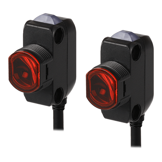 BH20M-TDT Sensor fotoeléctrico montaje frontal/lateral, con detección tipo barrera a una distancia máxima de operación de 20m. Con ajuste de sensibilidad. Indicado para detectar material opaco de min. Ø20mm. Rango de tensión de alimentación: 12-24VCD. Modo de operación: Light ON/Dark ON (establecido por interruptor). Salida de control simultanea tipo NPN/PNP colector abierto. Fuente de luz: LED rojo (660 nm). Tipo de conexión: cable 2.1m. Protección: IP67.