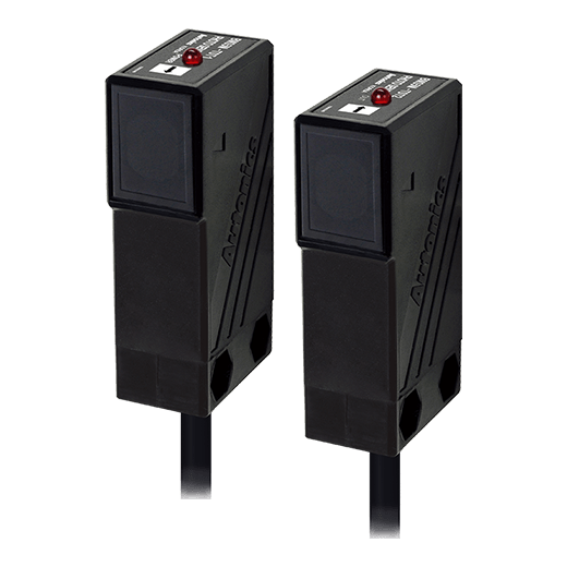 BMS5M-TDT Sensor fotoeléctrico de proposito general deteccion lateral, con detección tipo barrera a una distancia máxima de operación de 5m. Sin ajuste de sensibilidad. Indicado para detectar material opaco de min. Ø10mm. Rango de tensión de alimentación: 12-24VCD. Modo de operación: Light ON/Dark ON (establecido por cable de control). Salida de control tipo NPN colector abierto. Fuente de luz: LED infrarrojo (940 nm). Tipo de conexión: cable 2m. Protección: .
