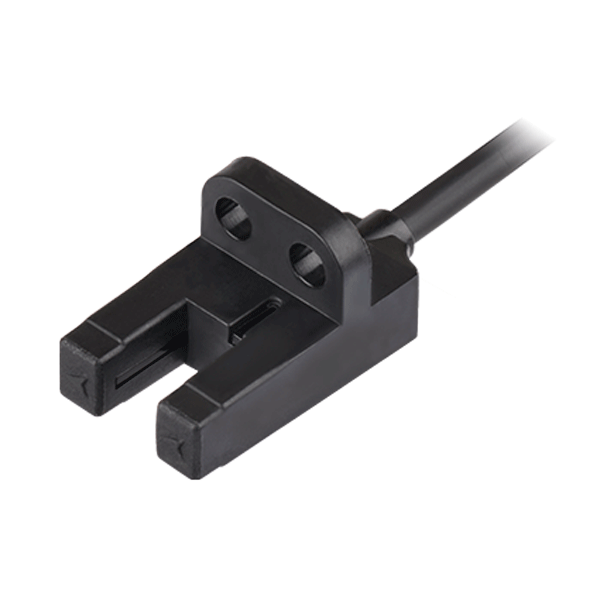 BS5-V1M Fotomicro sensor con profundidad de ranura de 9 mm, diseño tipo V, detección tipo barrera a una distancia máxima de operación de 5mm. Sin ajuste de sensibilidad. Indicado para detectar material opaco de min. Ø0.8mm. Rango de tensión de alimentación: 5-24VCD. Modo de operación: Light ON/Dark ON (establecido por cable de control). Salida de control tipo NPN colector abierto. Fuente de luz: LED infrarrojo (940 nm). Tipo de conexión: Conector. Protección: IP50.