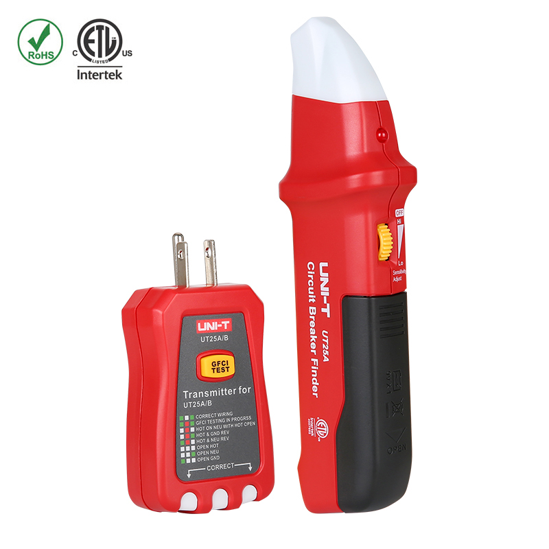 Buscador de circuito abierto CA. Valores máximos de medida: 120V AC, 47-63Hz. Características: Detección rápida y precisa de la ubicación del disyuntor, prueba de enchufe GFCI, control de sensibilidad adecuado para diferentes intensidades de señal, indicación visual y de audio, prueba NCV, paquete 2 en 1 de receptor y transmisor