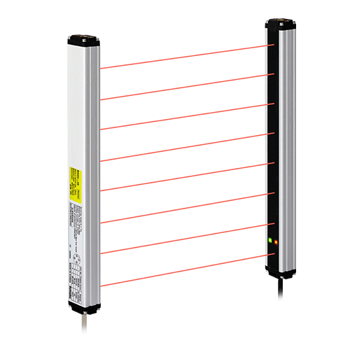 BW40-20P Sensor de área de propósito general tipo barrera. 22 configuraciones. Función para prevencion de interferencia mutua, autodiagnóstico y prueba de operación estable. Numero de ejes ópticos: 20. Paso entre haces: 40mm. Altura de detección: 760mm. Distancia de detección: 0.1-7m. Indicado para deteccion de material opaco de mínimo Ø50mm. Tensión de alimentacion: 12-24V60Hz. Salida de control: PNP colector abierto. Modo de operación: Light on. Tiempo de respuesta: 10ms. Grado de protección IP65.