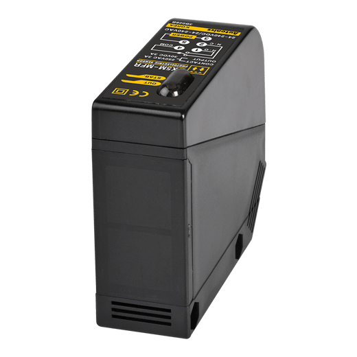 BX5M-MFR-T Sensor fotoeléctrico universal con timer integrado, con detección tipo retro reflectivo a una distancia máxima de operación de 5m. Con ajuste de sensibilidad. Indicado para detectar material opaco de min. Ø60mm. Rango de tensión de alimentación: 24-240VAC/DC. Modo de operación: Light ON/Dark ON (establecido por interruptor). Salida de control tipo Relay. Fuente de luz: LED infrarrojo (940 nm). Tipo de conexión: bloque de terminales. Protección: IP66.