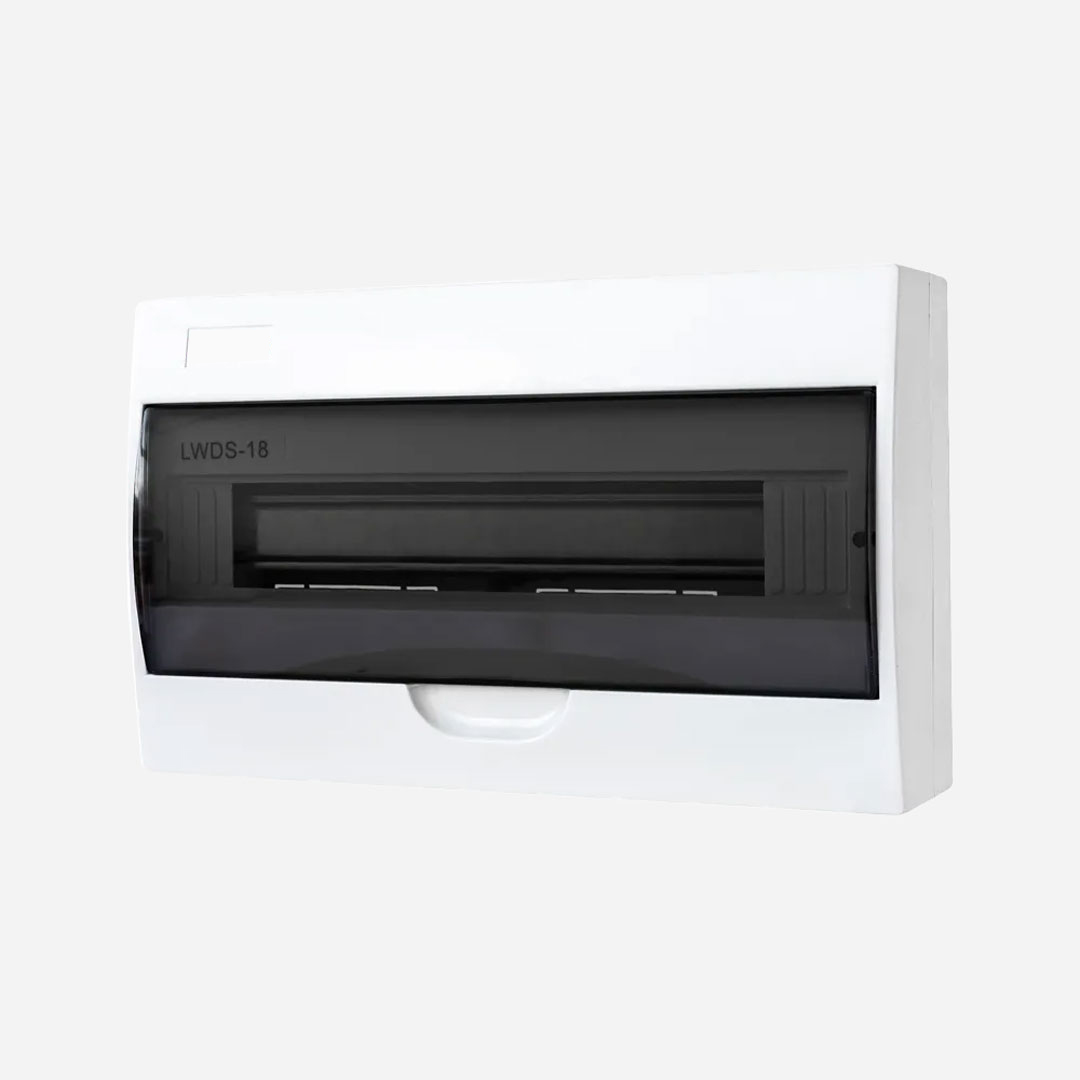 Serie LWDS. Caja de distribucion p/sobreponer con 18M. Dimensiones:363mmHX220mmWX99mmD. Blanco. Material:Plastico ABS.Standard:IEC60439-3 IEC61000. Resistencia al fuego:650°C/30s. Grado de proteccion:IP40