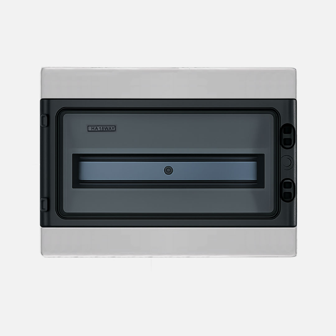 Serie LWHA. Caja de distribucion p/sobreponer con 18M. Dimensiones:285mmHX410mmWX140mmD. Gris. Material:Plastico ABS.Standard:IEC60439 IEC61000. Resistencia al fuego:650 °C/30s. Grado de proteccion:IP65. Sugerido de producto aproximado Cod.CDN18PT Marca