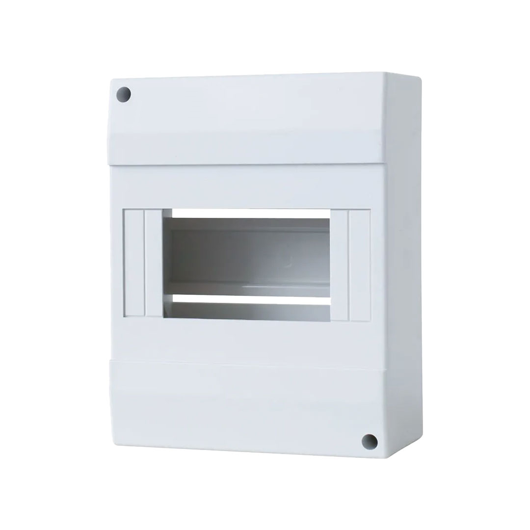 Serie LWHG. Caja de distribucion p/sobreponer con 8M. Dimensiones:160mmHX160mmWX60mmD. Blanco. Material:Plastico PS.Standard:IEC60439-3 IEC61000. Resistencia al fuego:650°C/30s. Grado de proteccion:IP30. Sugerido de producto aproximado Cod.BT8 Marca IDE