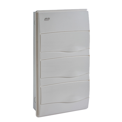 Serie . Caja distribución para empotrar con ventana opaca blanca ABS RAL 9003. Módulos: 3x12 (36) raíl DIN. Dimensiones: 517Hx283Wx97Dmm. Dimensiones de área de empotrar: 497Hx263Wx65Dmm. Grado de protección: IP40. Protección impacto: IK08. Tensión de empleo: 100VAC/1500VDC. Doble aislamiento Clase II. Temperatura de trabajo: -25ºC~+40ºC. Material de base y marco: Base: PS RAL 7035, marco: ABS Blanco RAL 9003. Plásticos libres de halógenos con protección UV.