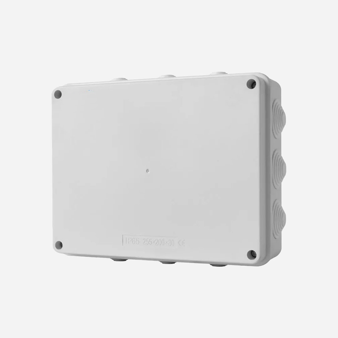 Serie LWBT. Caja estanca con conos pasacables con 12/36. Dimensiones:250mmHX200mmWX80mmD. Blanco. Material:Plastico ABS.Standard:IEC60529 IEC60670. Resistencia al fuego:. Grado de proteccion:IP55