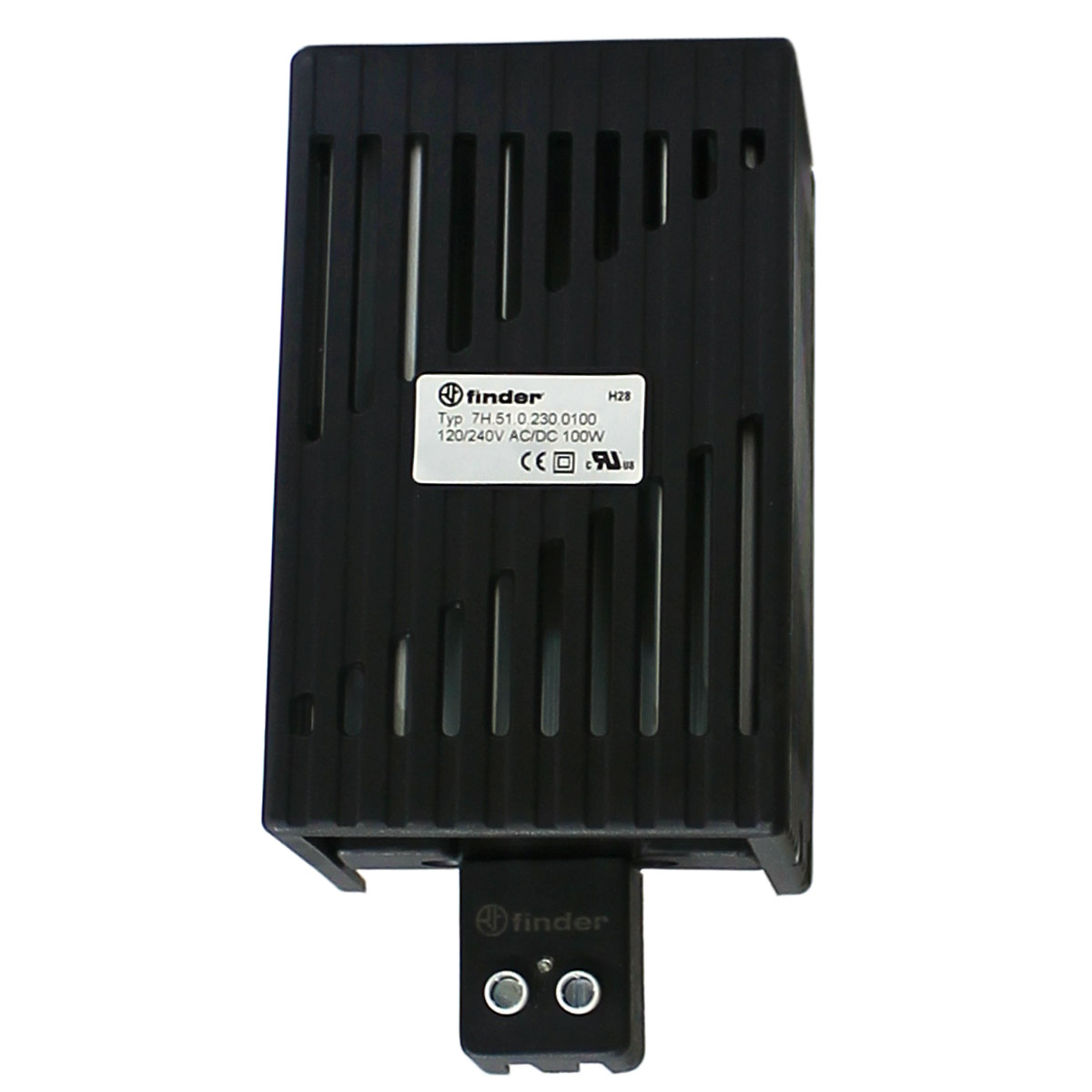 7H.51.0.230.0100 Calefactores de cuadro seguros al tacto. Ofrece una potencia de calefacción de 100W. Está diseñado para montarse en clip para montaje en riel DIN TS 35 vertical. Se alimenta a 110-230VAC/DC para su funcionamiento. Para más información, por favor consulte la ficha técnica del producto.