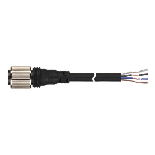 CID4-5T Serie E/S. Cable con conector hembra recto para señales DC M12 en un extremo, indicado para usarse con sensores de área, serie BW y serie BWC (transmisor). 4 polos. Sección nominal de 0.34mm²/22AWG. Cable de 5mt de extensión con asilamiento de PVC. Temperatura de trabajo de -25°C~80°C. Grado de protección IP68.