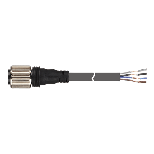 CIDH4-5 Serie E/S. Cable con conector hembra recto para señales DC M12 en un extremo, indicado para usarse con sensores fotoeléctricos, sensores de proximidad e interruptores de puertas de seguridad. 4 polos. Sección nominal de 0.34mm²/22AWG. Cable de 5mt de extensión con asilamiento de PVC resistente a aceites. Temperatura de trabajo de -25°C~80°C. Grado de protección IP68.