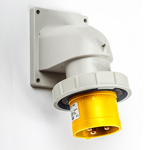 Clavija empotrar acodada 32A 2P+T 120VCA 4h Amarillo IP67