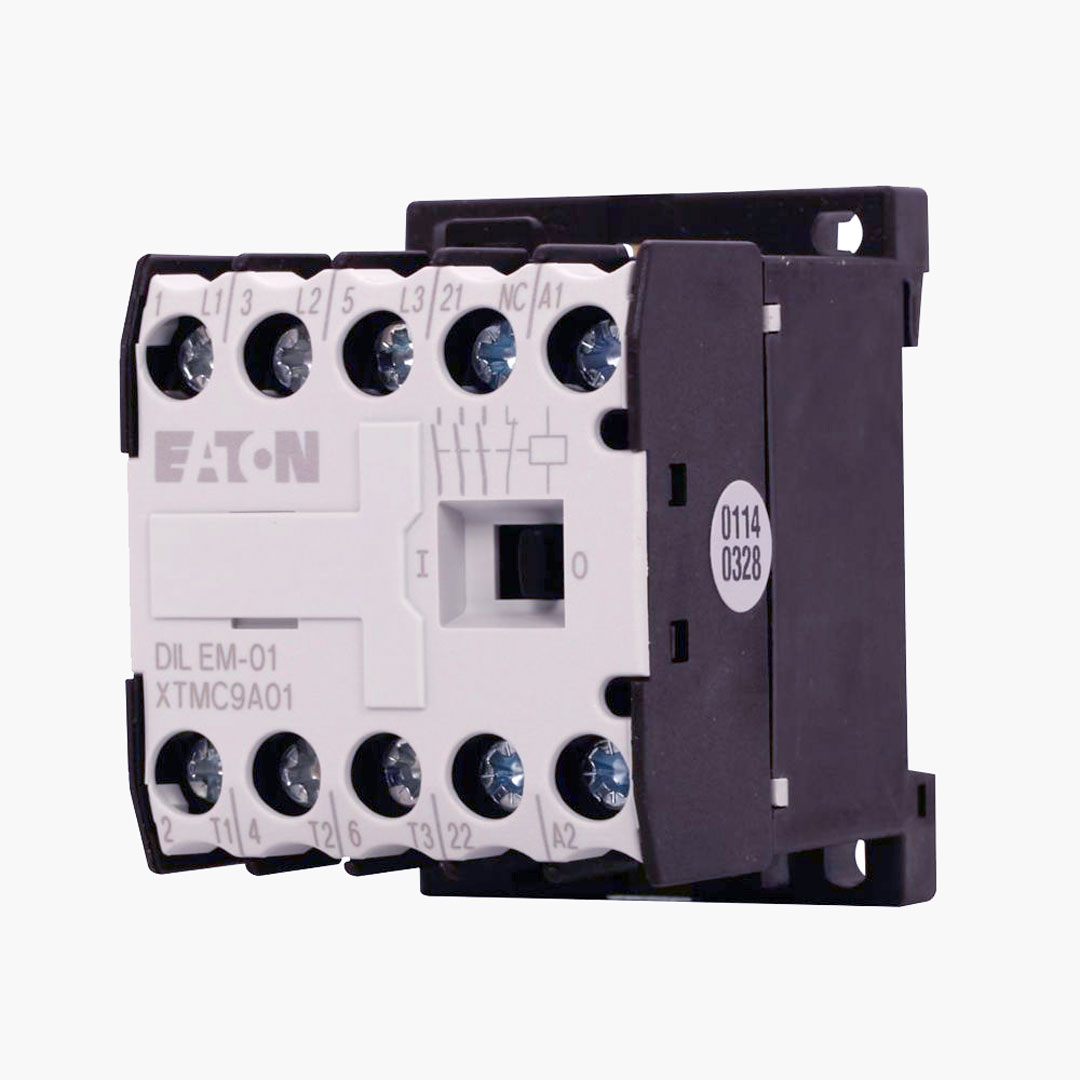 DILEM-01(220V50HZ,240V60HZ) Mini contactor trifásico con auxiliar 1NC, tensión de bobina de 240VCA, indicado para una carga de 9A, 0.5HP a 120VCA 1PH/3HP a 220VCA/5HP a 440VCA, temperatura de operación de -25/+60, grado de protección IP20, cumple con los estándares IEC/EN 60947-4-1; UL 508; CSA-C22.2 No. 14-05; CE marking.