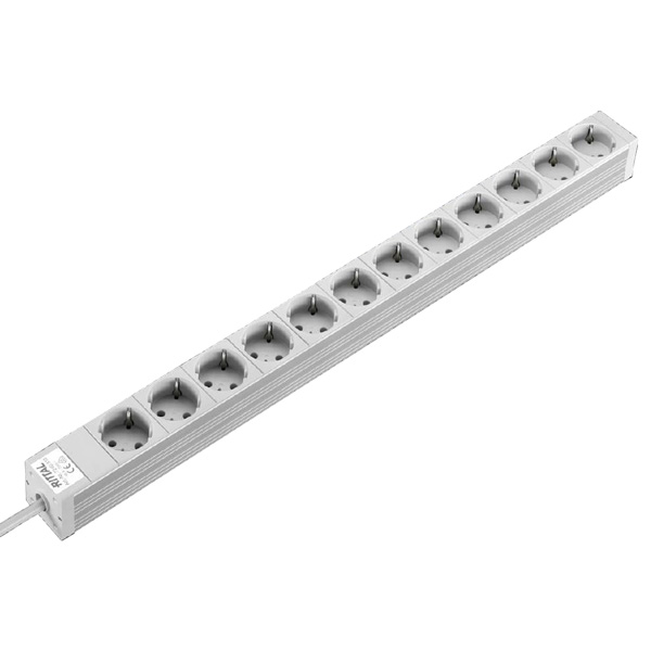 7240.310 DK Regletas de 12 enchufes en el canal de aluminio. Tipo conector Schuko. Sin interruptor basculante. Tensión de empleo: 250V. Color gris. Con cable de 2 metros.