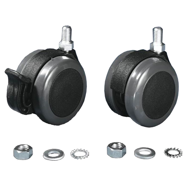 6148.000 DK Ruedas dobles. Distancia hasta el suelo de 85 mm. Color: negro con superficie lateral gris. Carga estática máx. admisible (por rueda): 75kg. Unidad de embalaje: 4 piezas.