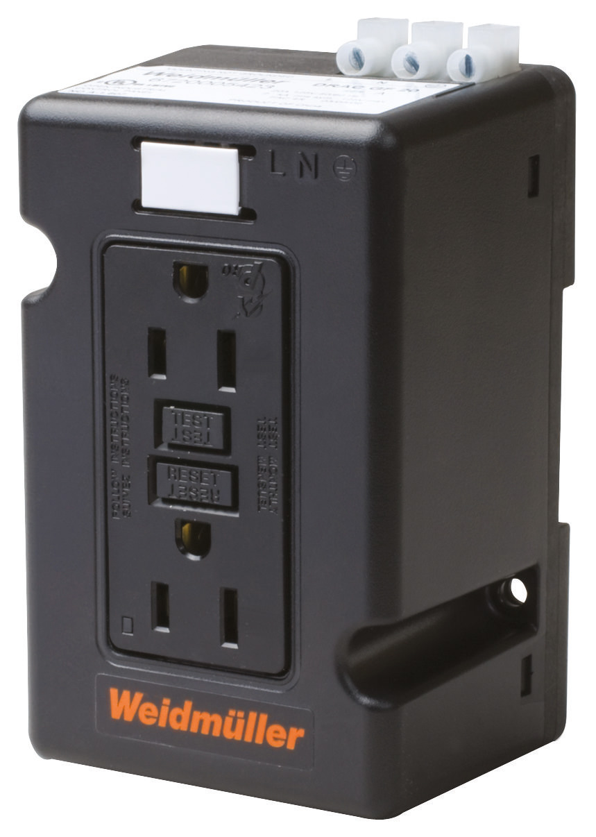 DRAC GF 15 Receptáculo duplex con interruptor diferencial polarizado (L+N+PE). Tensión de trabajo nominal (AC): 125VAC. Corriente de trabajo: 15A.Capacidad nominal de corriente de cortocircuito ISCCR: 2kA. Capacidad interruptiva: 10 kA. Corriente diferencial: 5mA.Temperatura de servicio: -35 °C…60 °C. Aprobaciones: TUL 508A, cULus