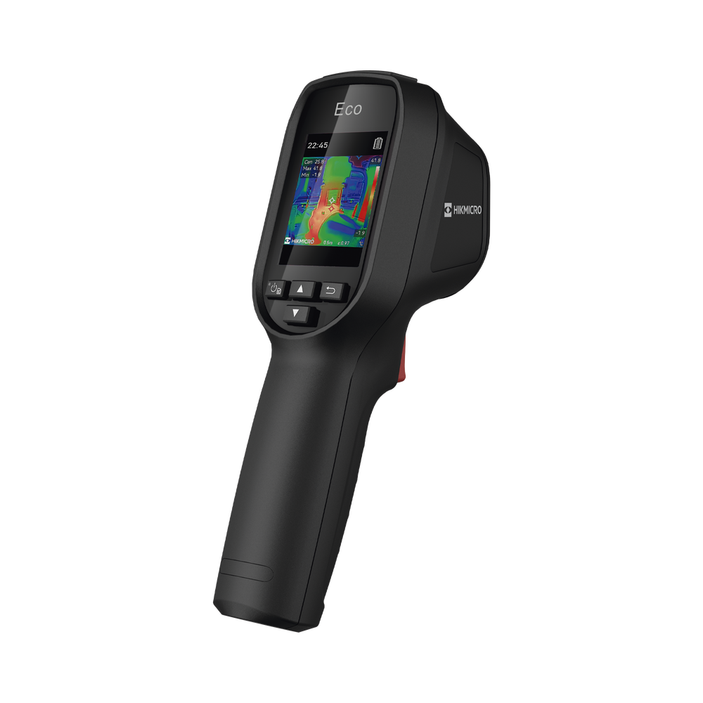 ECO Cámara termográfica portátil. Display con Resolución 240 × 320, pantalla LCD de 2,4”. Comunicaciones: USB Tipo-C, e interfaz USB tipo C. IR Resolución:96x96pxcon capacidad de mejora con SuperIR. Rango de medición de temperatura: -20~550 °C. Longitud focal: 1.35mm. Rango de temperatura de trabajo: -10°C a 50°C. Sensibilidad térmica NETD: < 50 mK. Frecuencia de imagen: 25Hz.
