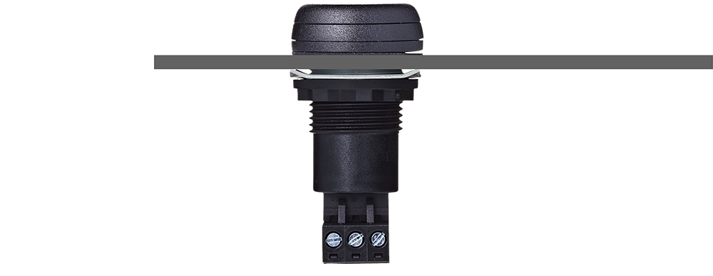 ESK Zumbador montaje traspanel M22 con conexión por terminales. Diámetro de Ø30mm. Tono 2 tonos. Señalización acústica clara de aprox. 65dB. Tensión de alimentación: 110-120VCA. Temperatura de operación: -25 °C ~+60 °C. Material: . Grado de protección: IP65.