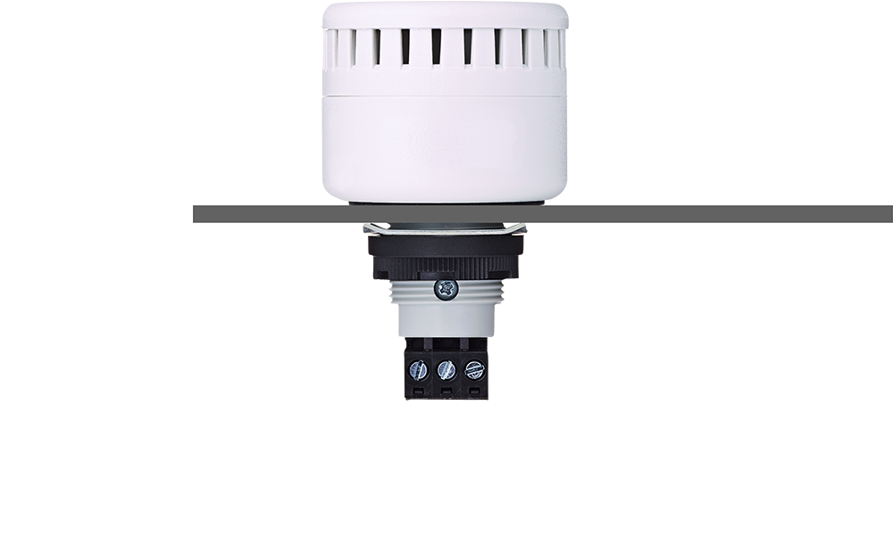 ESM Zumbador montaje traspanel M22 con conexión por terminales. Diámetro de Ø45mm. Tono continuo/intermitente. Señalización acústica clara de aprox. 85-100 dB (ajustable mediante potenciómetro). Tensión de alimentación: 150-260VCA. Temperatura de operación: -25 °C ~+60 °C. Material: . Grado de protección: IP65, UL 4/4X/13.