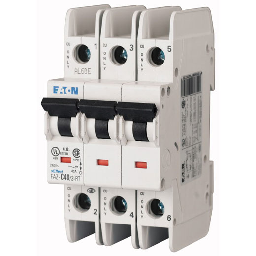 FAZ-D2/3-RT xEfect Interruptor automático termomagnético (disyuntor MCB), para uso en USA. 3 polo(s). Corriente nominal: 2A. Curva de disparo: tipo D. Capacidad interruptiva de acuerdo a UL1077: 10kA. Tensión nominal (UL): 277/480VCA y 48CD por polo. Montaje en riel DIN IEC/EN60715. Grado de protección: IP20.