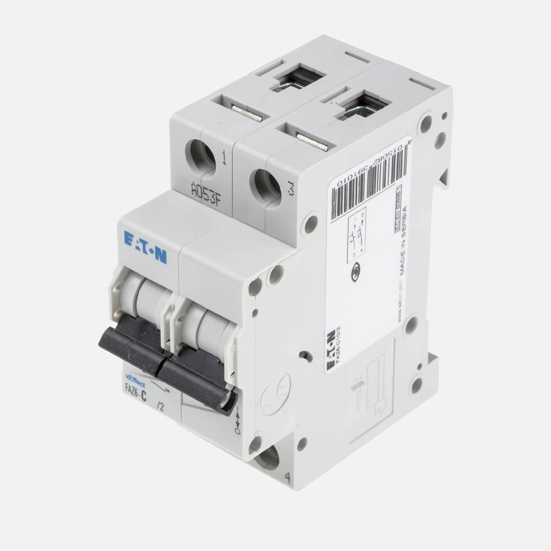 xEffect Interruptor automático termomagnético en miniatura (MCB) modelo FAZ6-C50/2. Diseño de 2P. Permite la protección a una corriente nominal de 50A, bajo la curva de disparo tipo C. Cuenta con capacidad interruptiva de 6kA de acuerdo al estándar IEC/EN 60898 y 10kA de acuerdo al estándar IEC 60947-2. Soporta una tensión máxima de empleo de 230VCA o 60VCD por polo. Especificado para el montaje en riel DIN. El interruptor proporciona un grado de protección IP20 y está fabricado bajo los estándares IEC/EN 60947-2, IEC/EN 60898-1, del mismo modo cuenta con las siguientes aprobaciones UR (UL 1077), CSA (CSA 22.2 No. 235), CE, ÖVE y EAC.