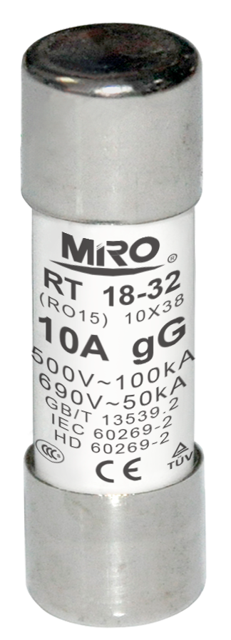 Fusible cilíndrico para uso general. Clase gG. Protección contra sobrecarga y cortocircuito en líneas eléctricas. Tamaño 10x38mm. Indicado para una corriente de 1A. Máxima tensión de empleo 690VCA. Especificado a una capacidad interruptiva de 100kA. Aprobaciones: GB13539, IEC269.
