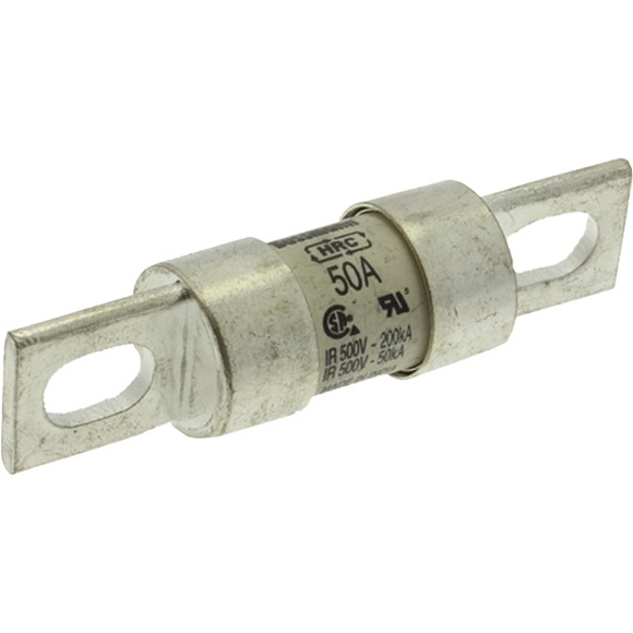 Fusible ultrarrápido de navajas con diseño norteamericano. Indicado para una corriente de 50A. Máxima tensión de empleo 500VCA/VCD. Especificado a una capacidad interruptiva de 200kA/50kA a VCD. Aprobaciones: UL Listed, CSA certified, RoHS compliant, CE.