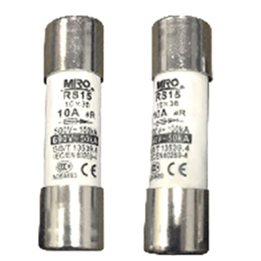 Fusible cilíndrico ultrarrápido para para semiconductores. Clase aR. Protección de piezas y equipos semiconductores contra cortocircuito. Tamaño 10x38mm. Indicado para una corriente de 10A. Máxima tensión de empleo 690VCA. Especificado a una capacidad interruptiva de 100kA. Aprobaciones: GB13539, IEC269.
